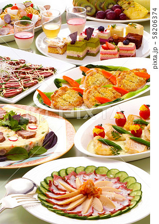 ブッフェ 料理 料理集合 ディナー ランチ パーティー料理 食品 食べ物 洋食 デザート 果物