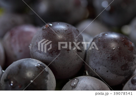 巨峰の背景素材・葡萄「巨峰」の果粉の多い果実水滴あり・実の部分アップ葉なし横位置