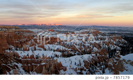 雪と石柱がが輝くブライスキャニオンでの日の出
