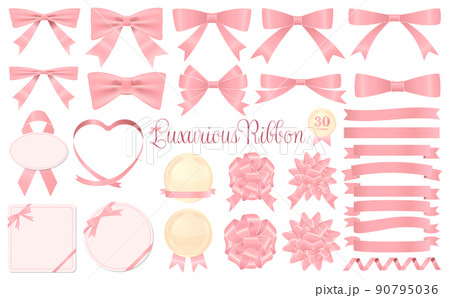 クラシックなリボンのあしらいとフレームのベクターイラストセット ピンク /