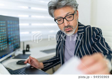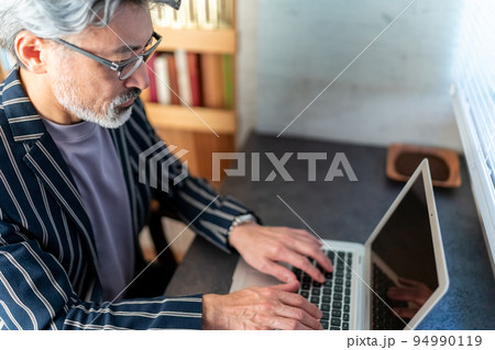 渋い ビジネスマン 英国紳士 エレガントな佇まい パソコン カフェ