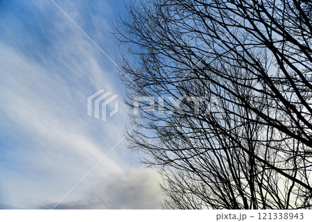 A tree with no leaves is in the foreground