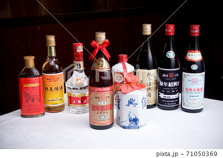 テーブルに並べられた様々な中国酒