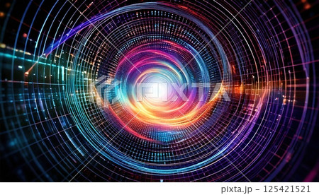 発光スパイラルが流れる情報トンネル(ai生成画像)