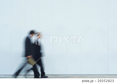 白い壁の前を歩く二人の男性 モーションブラー