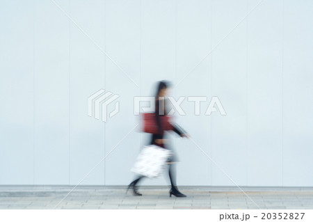 白い壁の前を歩く女性 モーションブラー