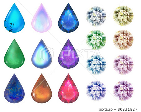 ペア型(しずく型)とラウンド型(丸型)のキラキラ宝石セット(白背景)