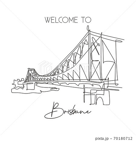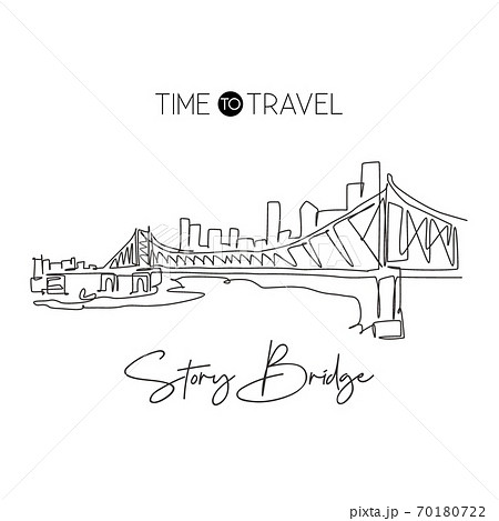 One single line drawing Story Bridge landmark. World famous iconic in Brisbane