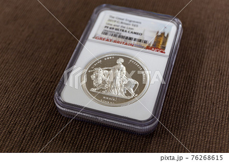 鑑定を受けてスラブに収まる2019年発行のウナとライオン銀貨