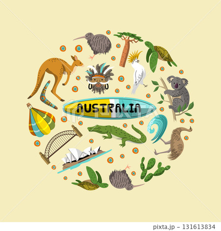 Australia circle kangaroo buildings koala crocodile and other national items of australia
