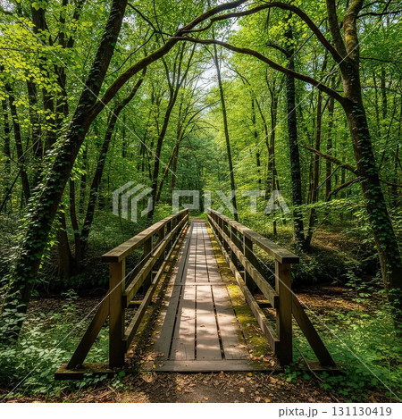 Wooden Bridge in a Lush Green Forest - Generative Ai