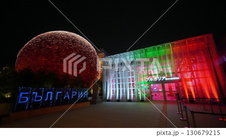 大阪・関西万博2025 ライトアップされたブルガリアパビリオン