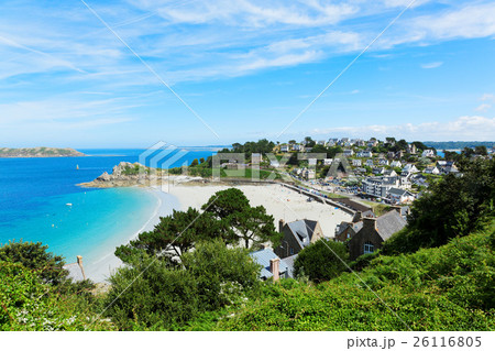 ブルターニュの避暑地ロキレックのビーチと周囲の景観