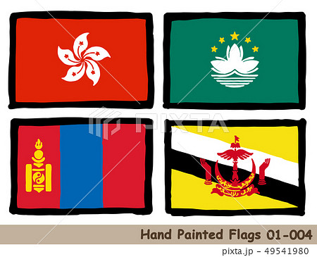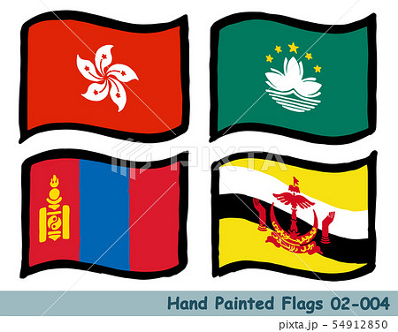 手描きの旗アイコン,香港の旗,マカオの旗,モンゴルの国旗,ブルネイの国旗