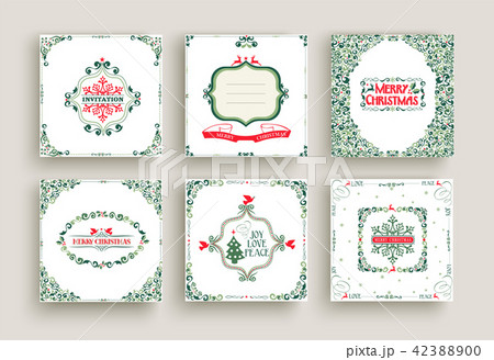 Merry Christmas vintage design greeting card set