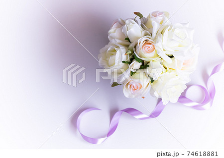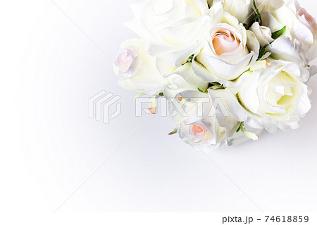 ロマンチックな淡いピンクと白い薔薇のブーケ(造花)