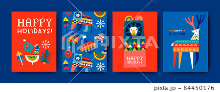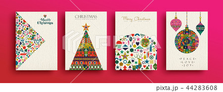 Merry Christmas retro folk art card collection