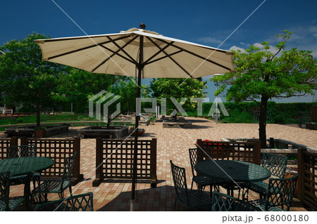 名古屋港ワイルドフラワーガーデン ブルーボネット パラソルのイスとテーブル
