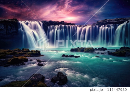 waterfall by blue lagoon magical nature landscape