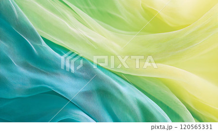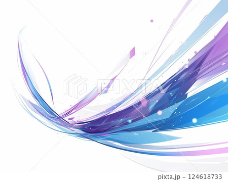 ブルーとパープルのカーブが描く透明感のある抽象デジタルアート