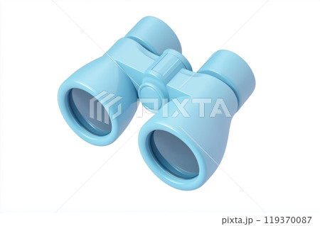 A 3D light blue pair of binoculars, depicted with smooth details and a clean, simple design