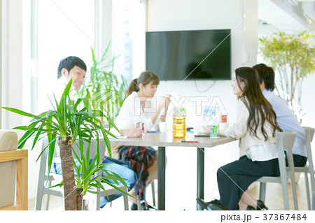休憩をする会社員 男性社員 女性社員 オフィスカジュアル 私服 中堅社員 ビジネスイメージ