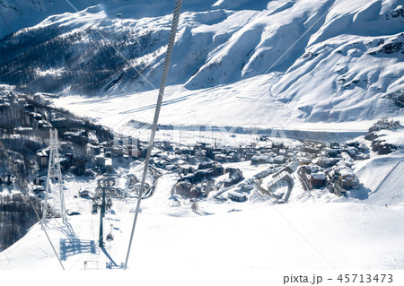 ブレイユ=チェルヴィナイア プラトー・ローザへのロープウェイから見た景色(3月、イタリア)