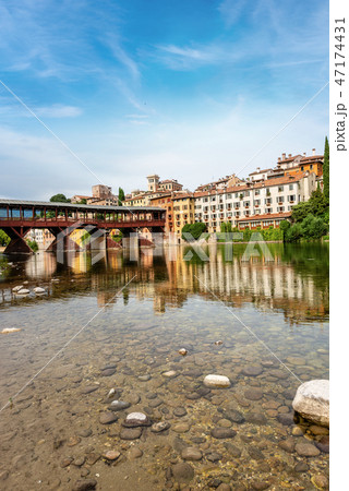 Beautiful medieval towns of Italy -picturesque Bassano del Grappa .Scenic view with famous bridge. Vicenza province, region of Veneto.