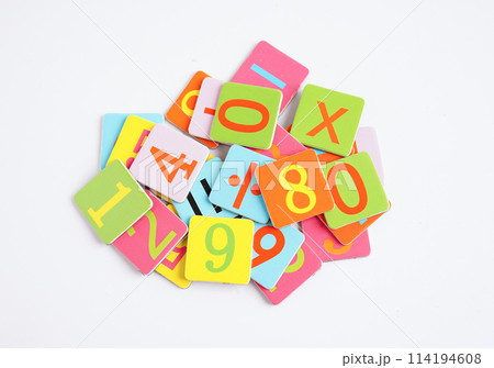 Number wood block cubes for learning Mathematic, education math concept.