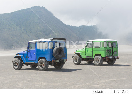 July 9-2023 Jeeps vehicle used by tourists for activities in the Bromo tengger semeru national park, Mt. Bromo popular tourist destination in East java Indonesia