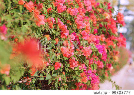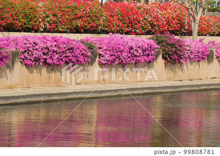 公園、花壇のイメージ写真、ブーゲンビリア、ブーゲンビレアのお花