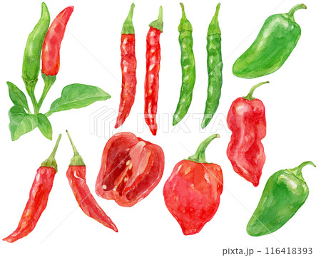 さまざまな唐辛子 水彩イラストセット