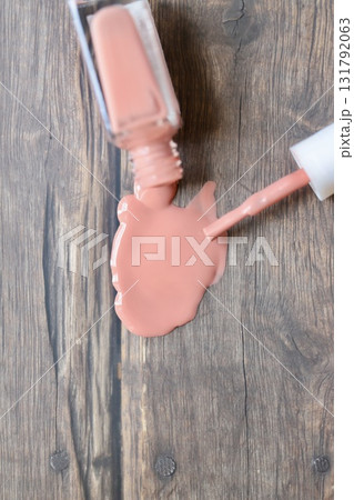 ナチュラルピンクのマニキュアとドライフラワー ネイルケア