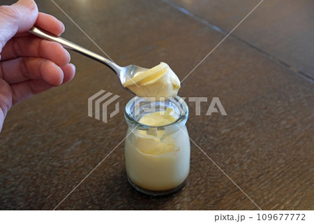 グチャグチャにしたゼラチンのカスタードプリン 崩したプリン