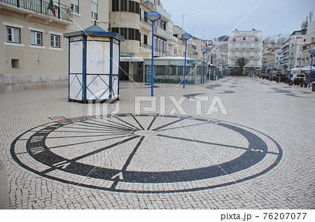 ポルトガル、ナザレ、ソウザ・オリベイラ広場の日時計、綺麗な石畳