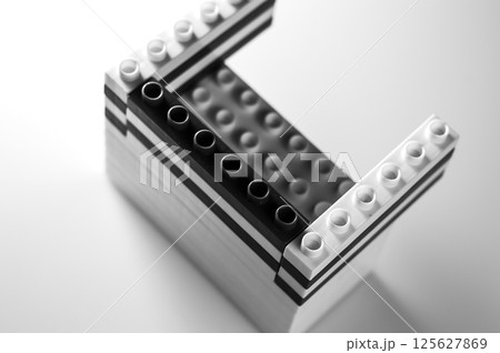 The children's plastic construction set displays a chaotic combination of elements. The colorful parts of the constructor form a dynamic structure.