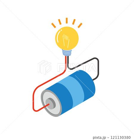 斜め上から見た電球と電池