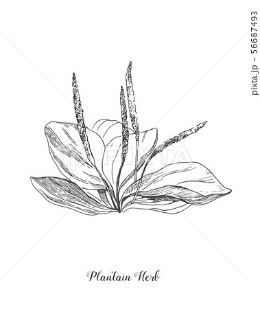 Plantain. Botanical Illustration. Medicinal plant wild field flower. Sketch.Hand drawn outline