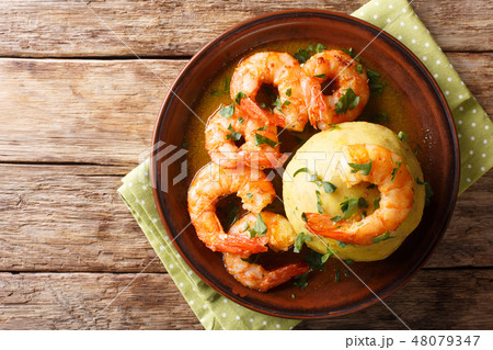 Latino american main course mofongo with shrimp