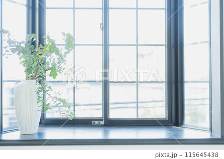 観葉植物のある窓辺
