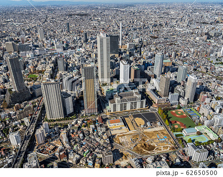 東京都豊島区東池袋のサンシャイン60とサンシャインシティアネックスと青空の都市景観