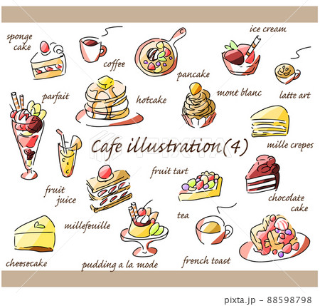 かわいい喫茶店ドリンク&スイーツのイラストセット