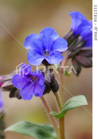 春のガーデンに咲くコバルトブルーのプルモナリアの花