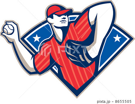 Baseball Pitcher Throwing Ball Retro