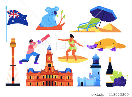 Traditional Values of Australia - flat design style objects set