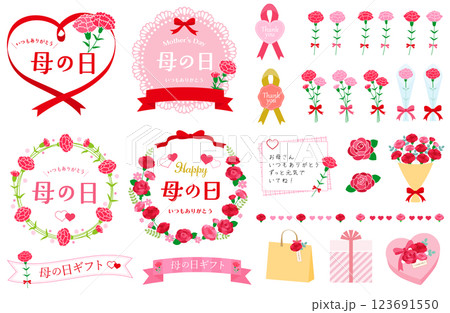 母の日イラストセット(塗りのみ・カラーバリエーション)