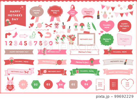 母の日のかわいいイラストとフレーム、リボンのデザインセット