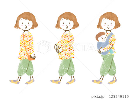 女性のライフステージ変化セット(独身・妊娠・育児)/可愛い手描き風イラスト