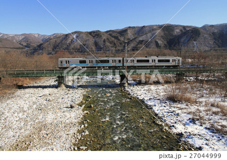 大糸線 厳寒の姫川を渡る