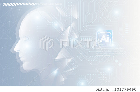 AI technology concept artificial abstract human side face with chip circuit board background in futuristic style